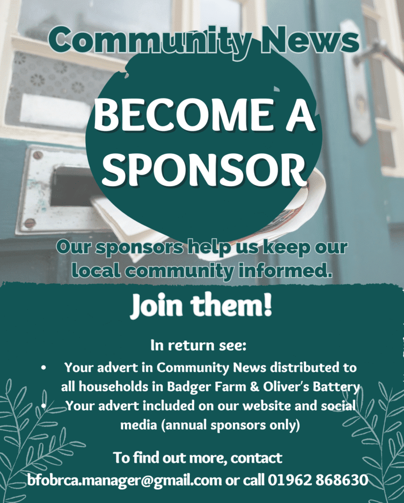 Three times a year, the Badger Farm and Oliver’s Battery Residents’ Community Association publishes Community News, a newsletter to keep residents up-to-date with what’s happening in Badger Farm and Oliver’s Battery. The newsletter has updates on our area from our MP and local and parish councillors. You can also read the latest from our local schools and churches. Follow the news from the clubs and support groups that meet regularly at the Community Centre and elsewhere in the area. Local residents and organisations share interesting articles on general topics from green issues to wildlife and nutrition to technology.